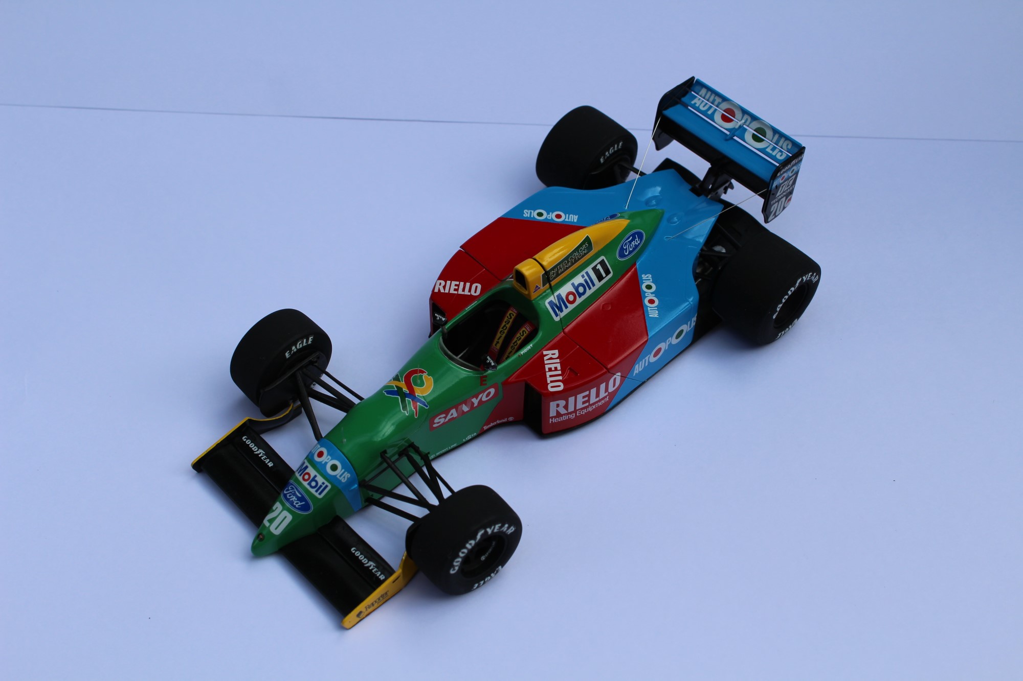 The decals were a replacement sheet, I think it was the Shunko one. The only issue I had with them was the shade of the green United Colors of Benetton logo on the yellow section of the engine cover, which doesn’t quite match the TS35 Park Green spray I used for the green area.